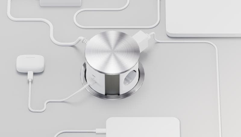 Блок розеток выдвижной вертикальный (3 розетки, USB-A, USB-C), белый
