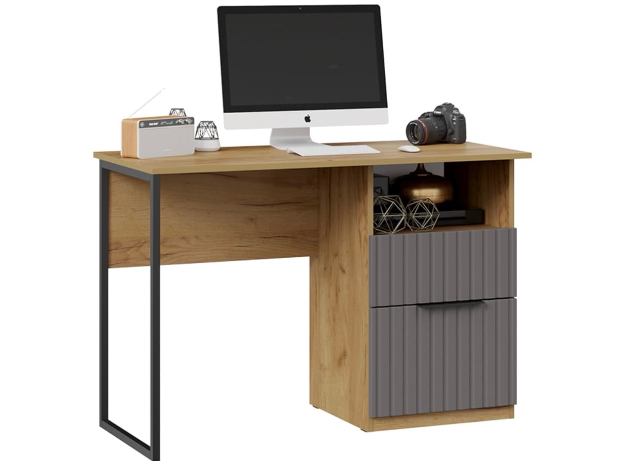 Стол письменный с тумбой на металлоопоре, дуб крафт золотой/графит матовый