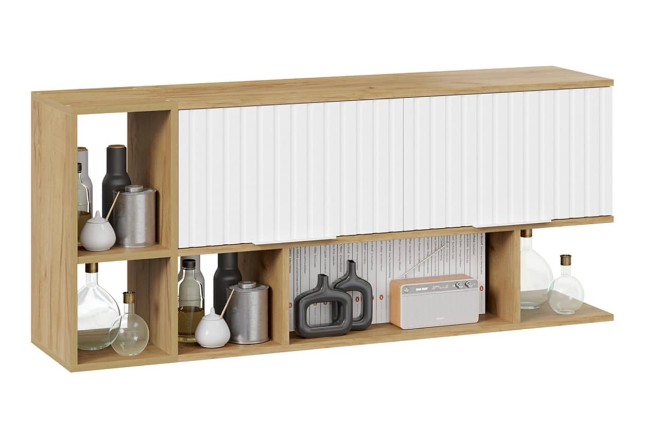 Шкаф настенный с двумя полками, дуб крафт золотой/белый матовый — Детская Хилтон мокко матовый — OKMebel24