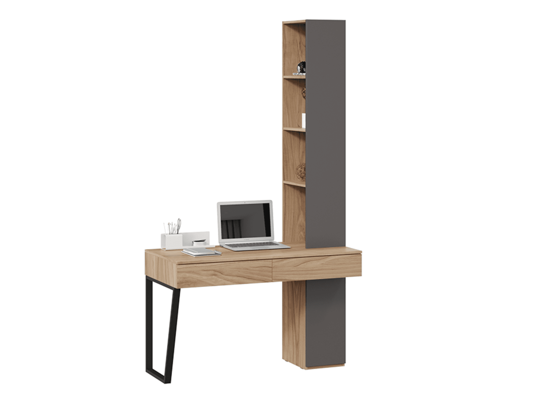 Стол письменный со шкафом комбинированным настольным и тумбой, яблоня беллуно/графит матовый