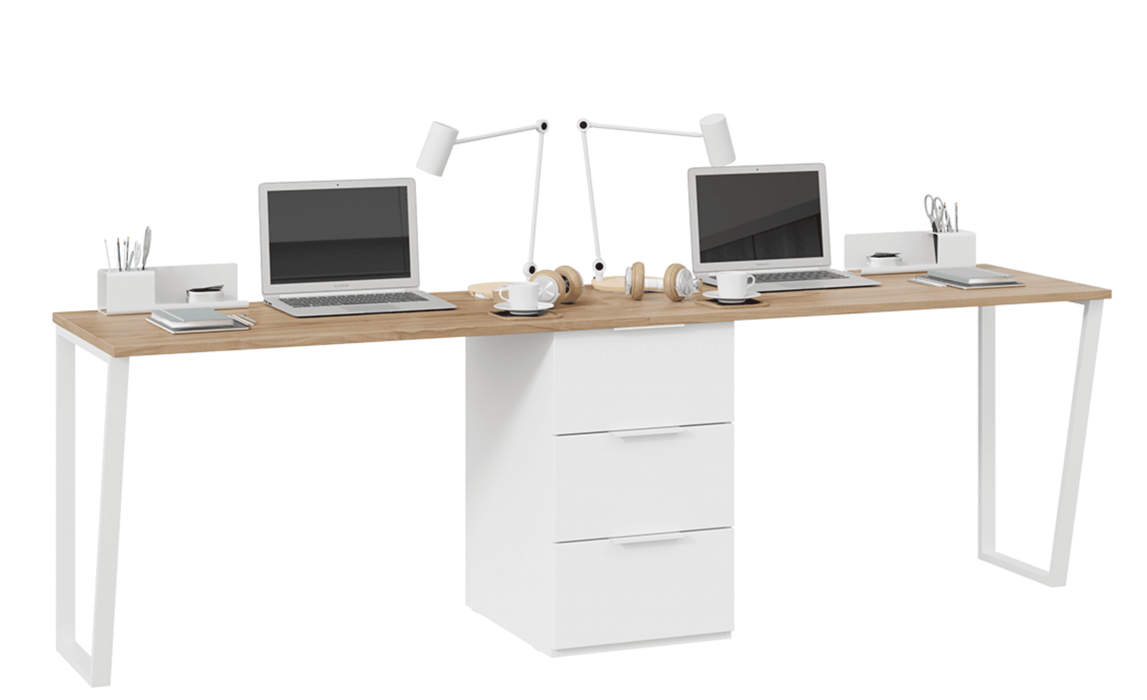 Комплект столов письменных с 1 тумбой универсальной, яблоня беллуно/белый глянец