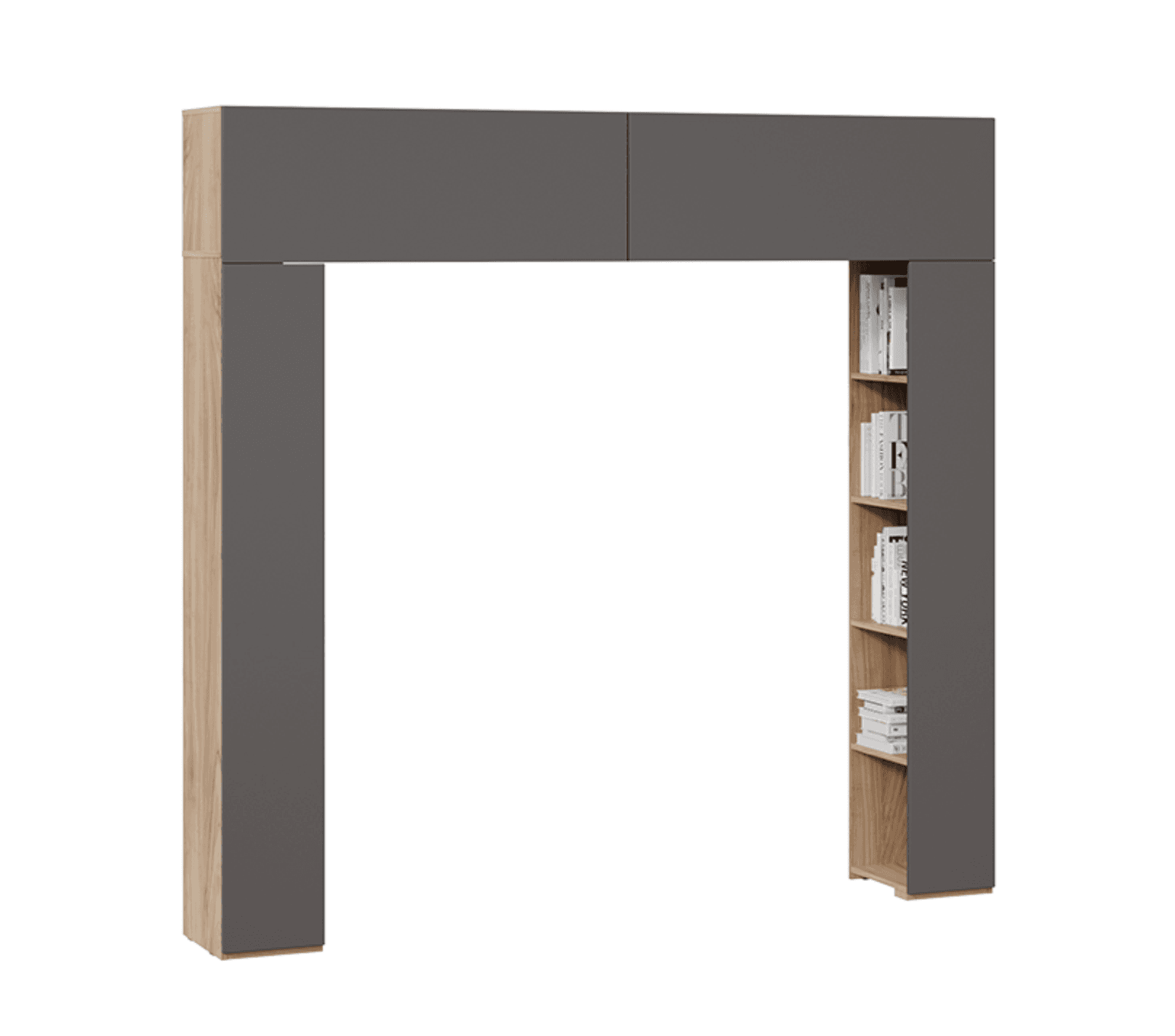 Шкаф навесной со стеллажами, яблоня беллуно/графит матовый