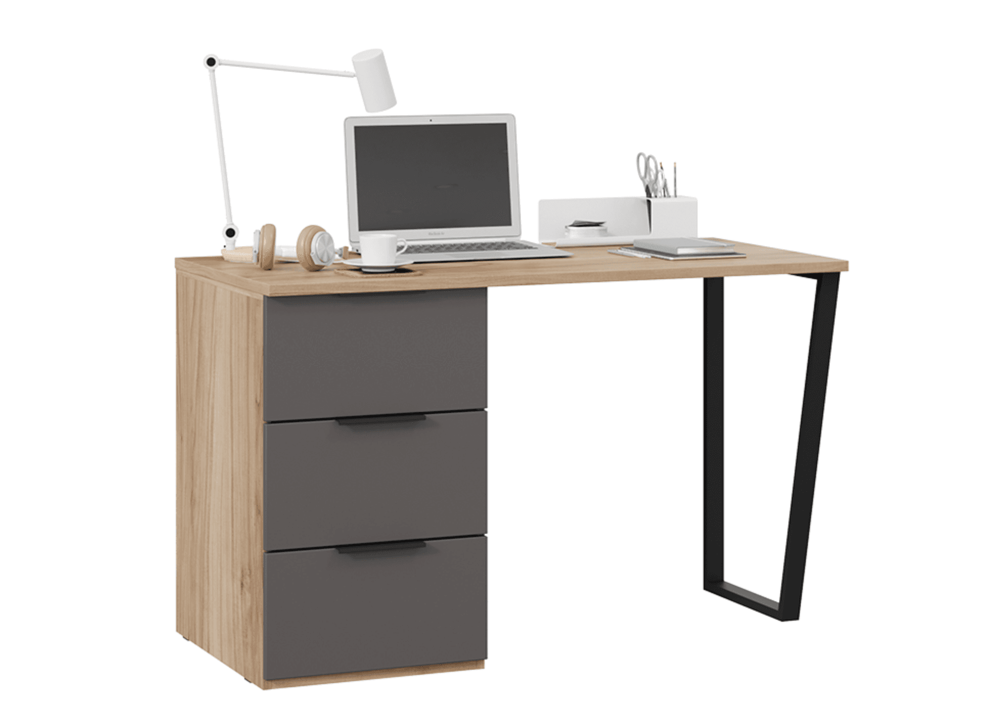 Стол письменный с тумбой универсальной, яблоня беллуно/графит матовый