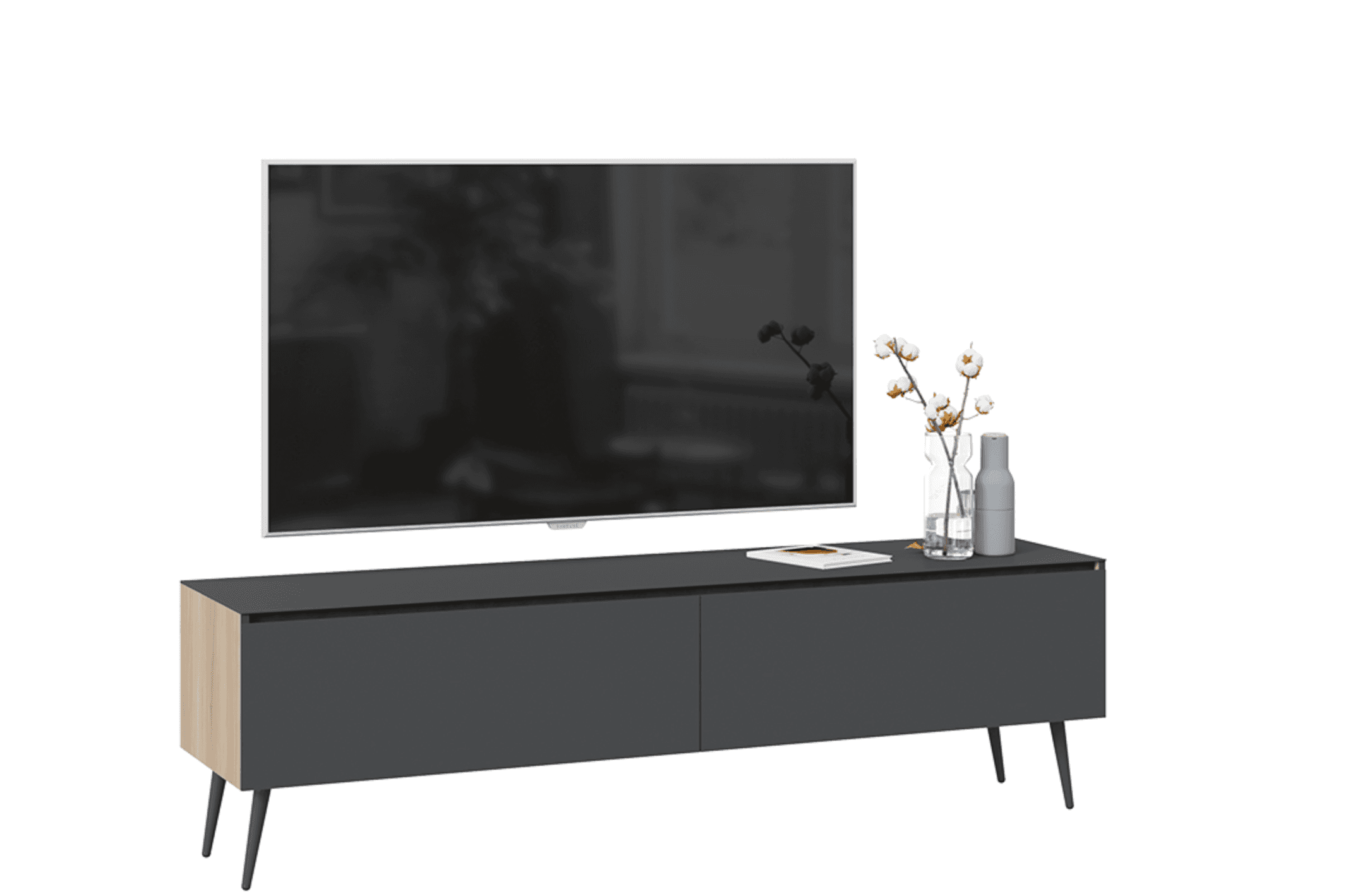 Тумба для телевизора с опорами, яблоня беллуно/графит матовый
