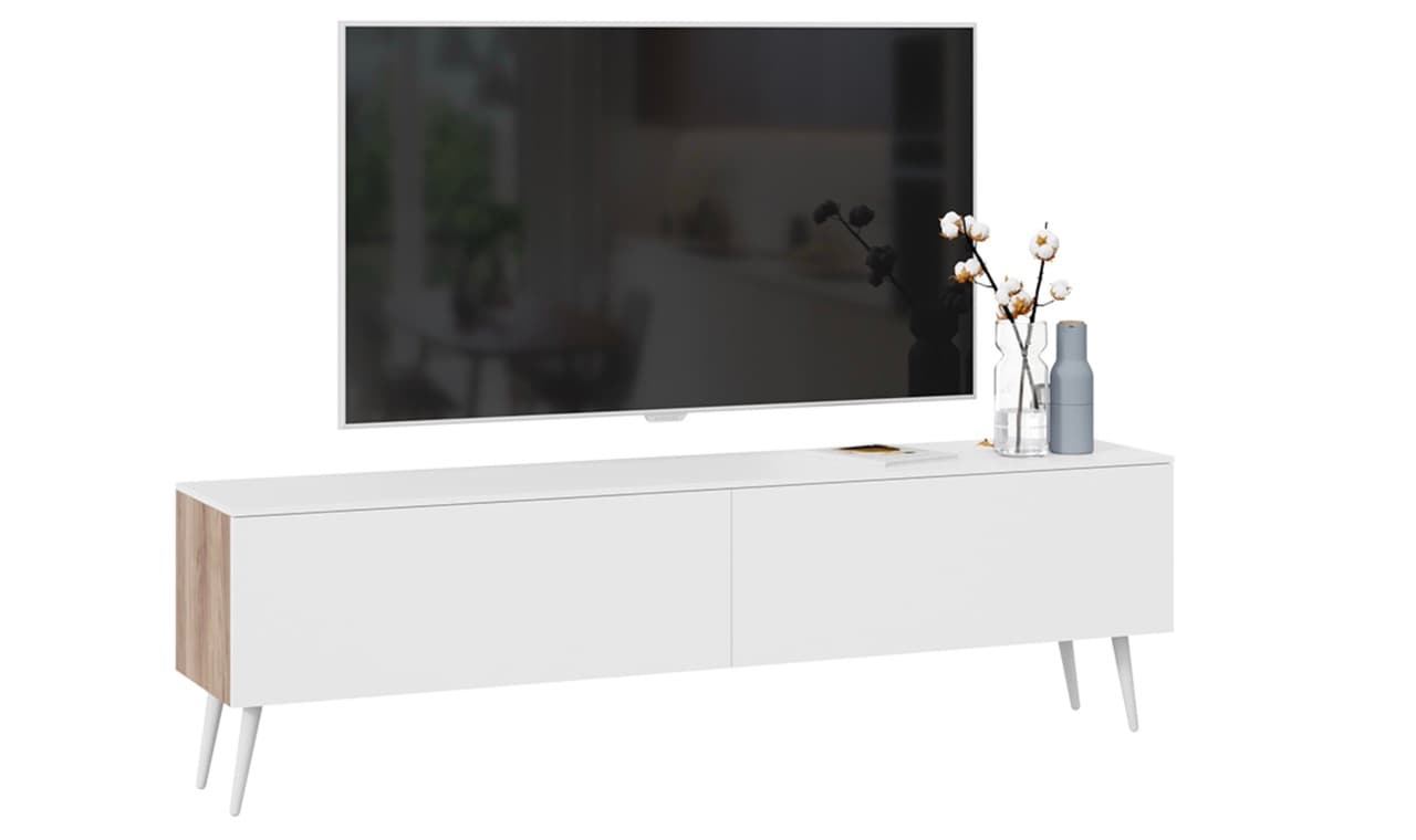 Тумба для телевизора с опорами длинная, яблоня беллуно/белый софт