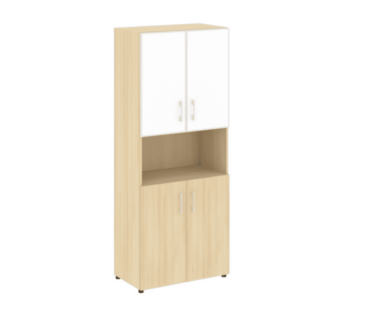 Шкаф высокий широкий (2 фасада ЛДСП + 2 стекло белое в раме), акация лорка