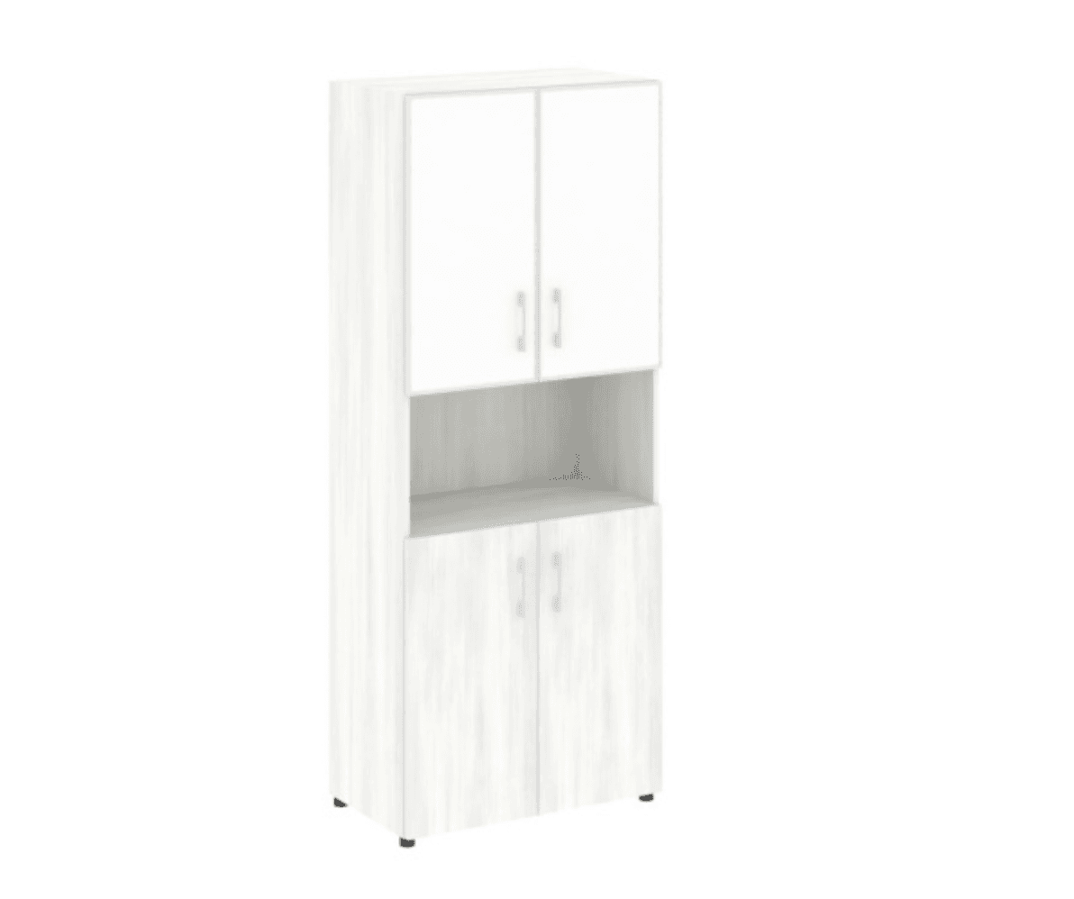 Шкаф высокий широкий (2 фасада ЛДСП + 2 стекло белое в раме), снежная патина