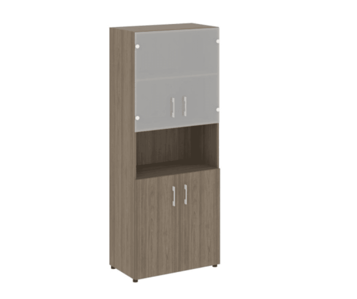 Шкаф высокий широкий (2 фасада ЛДСП + стекло), вяз благородный
