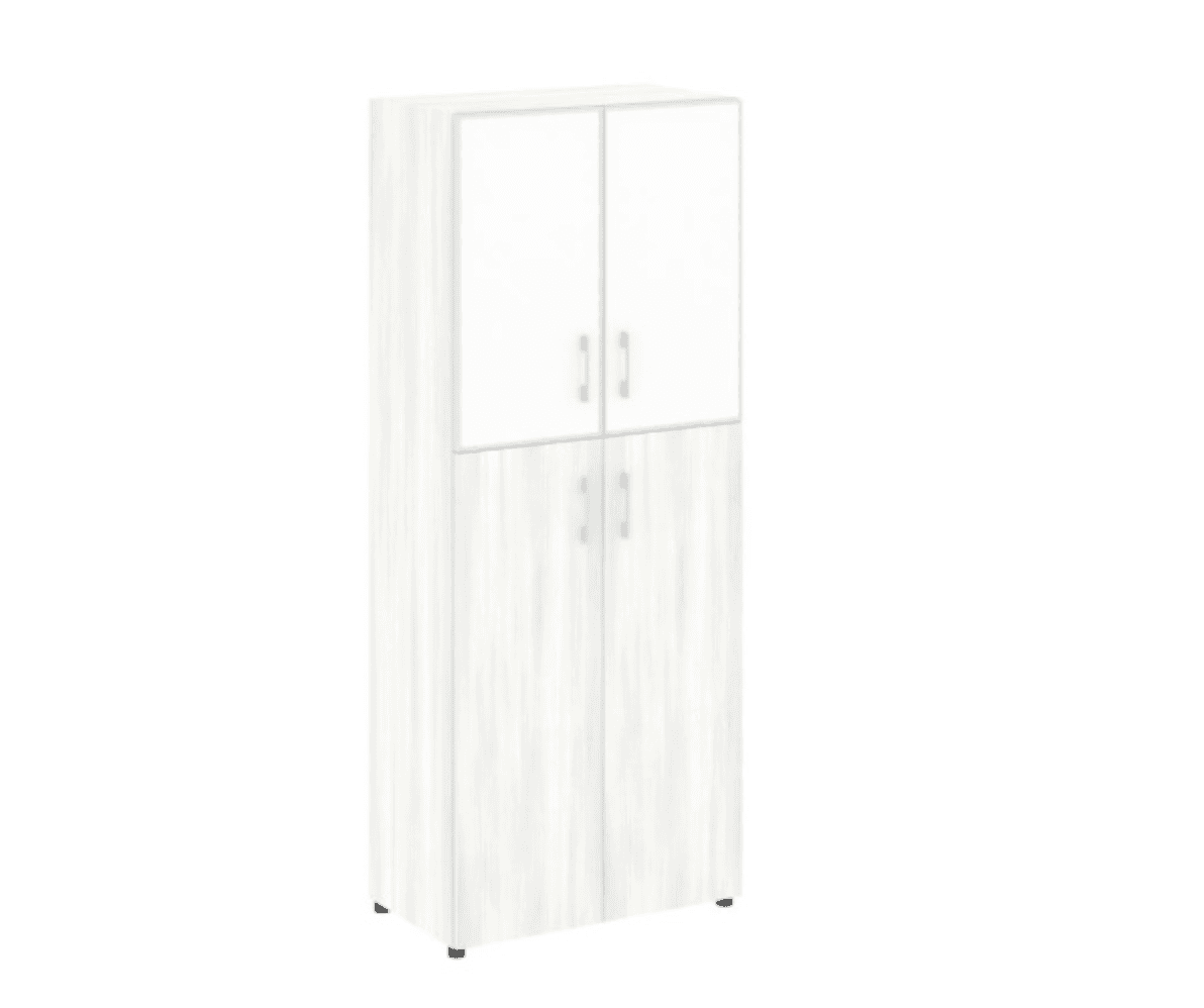 Шкаф высокий широкий (2 средних фасада ЛДСП + 2 стекло белое в раме), снежная патина