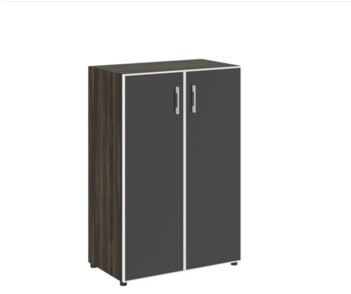 Шкаф средний широкий (2 средних фасада + стекло черное в раме) дуб мали