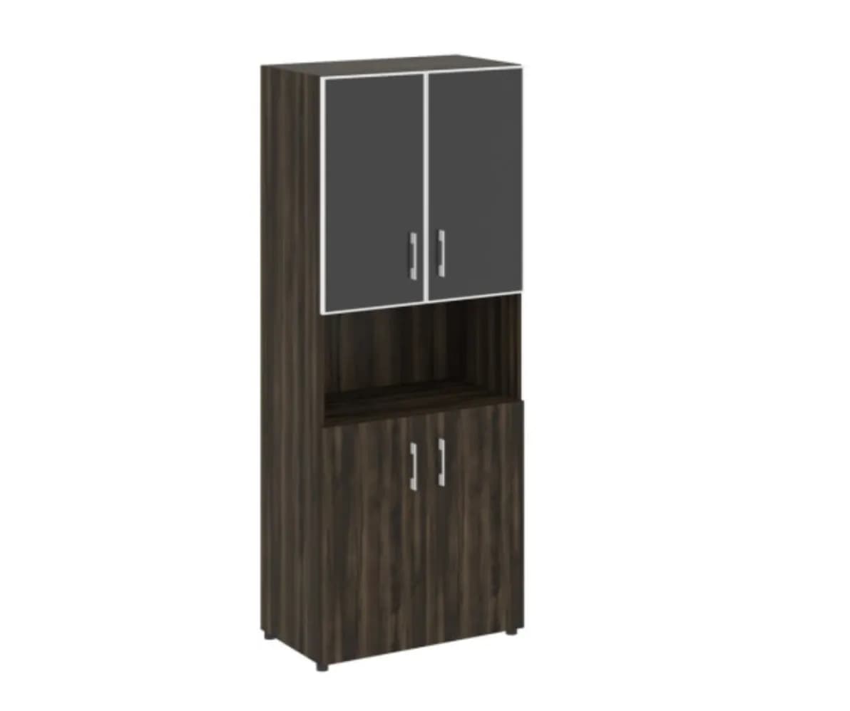 Шкаф высокий широкий (2 фасада ЛДСП + 2 стекло черное в раме) дуб мали