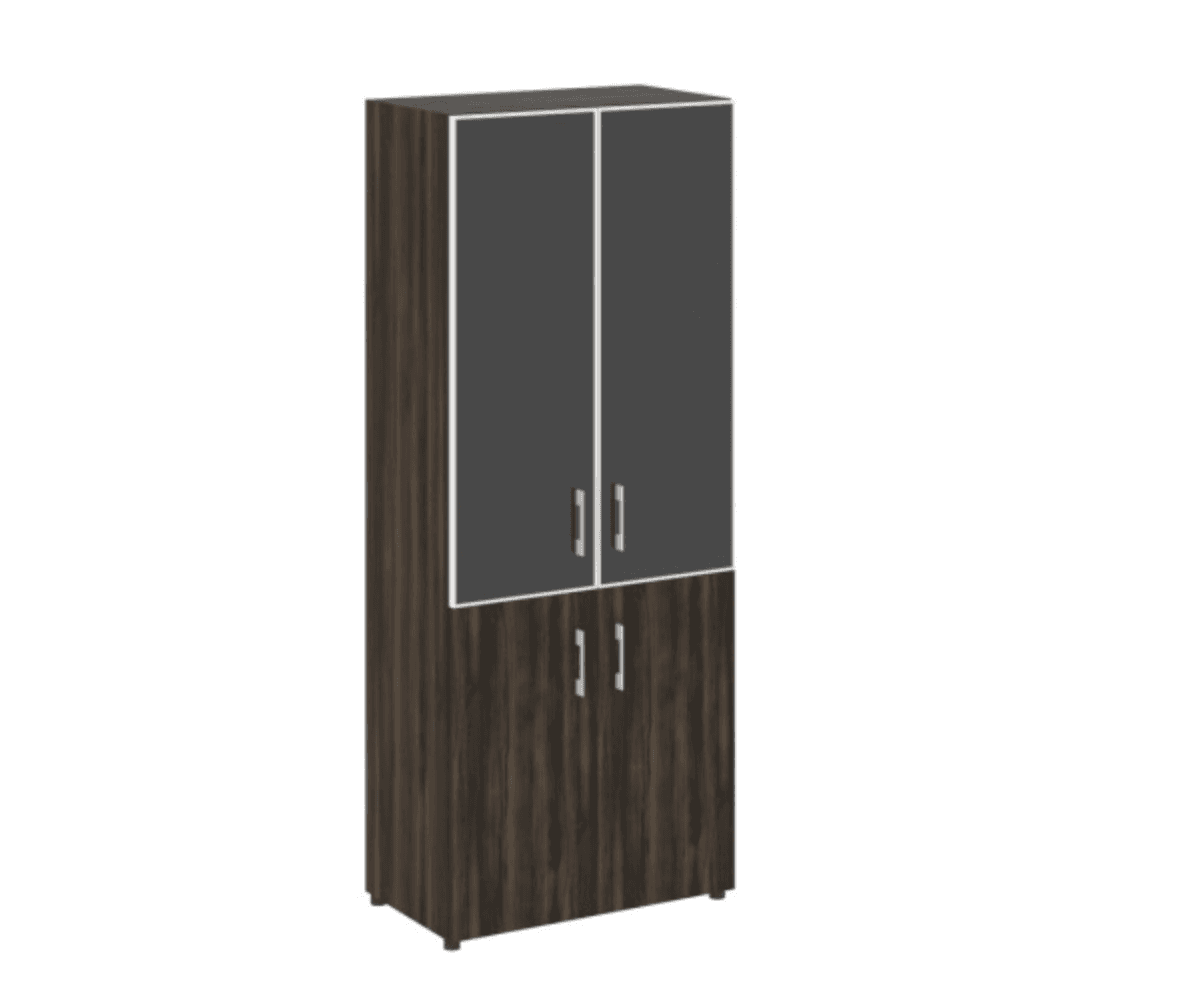 Шкаф высокий широкий (2 фасада ЛДСП + 2 стекло черное в раме), дуб мали