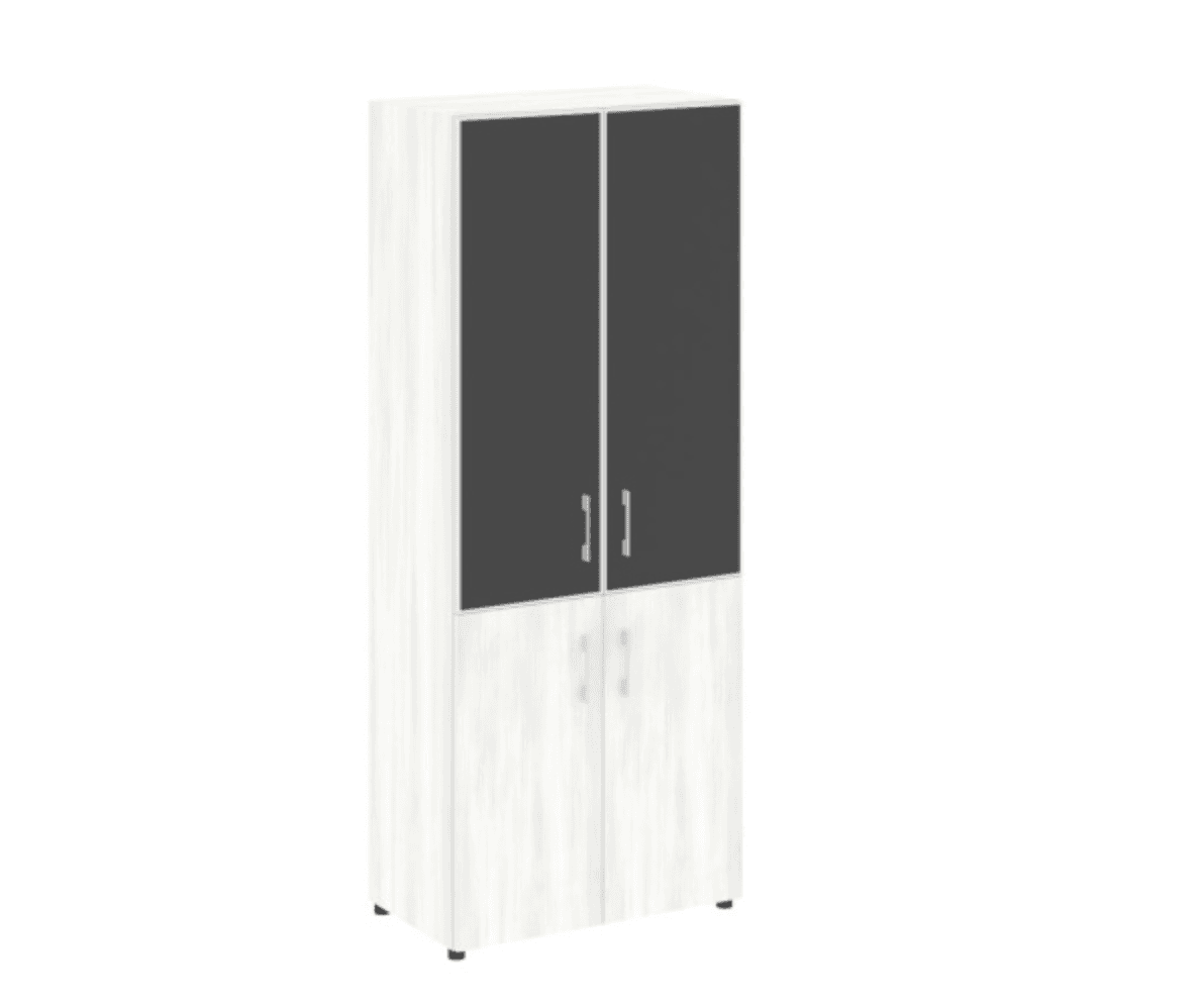 Шкаф высокий широкий (2 фасада ЛДСП + 2 стекло черное в раме), снежная патина
