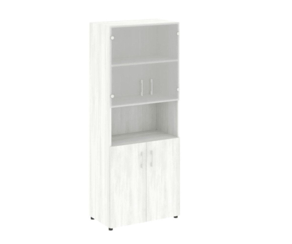 Шкаф высокий широкий (2 фасада ЛДСП + стекло), снежная патина