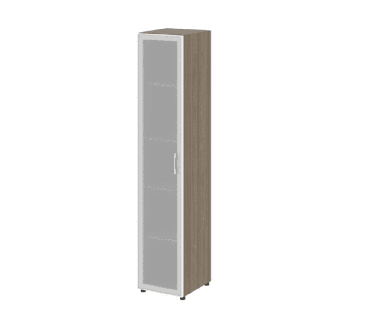 Шкаф высокий узкий левый/правый (1 высокий фасад стекло в раме), вяз благородный