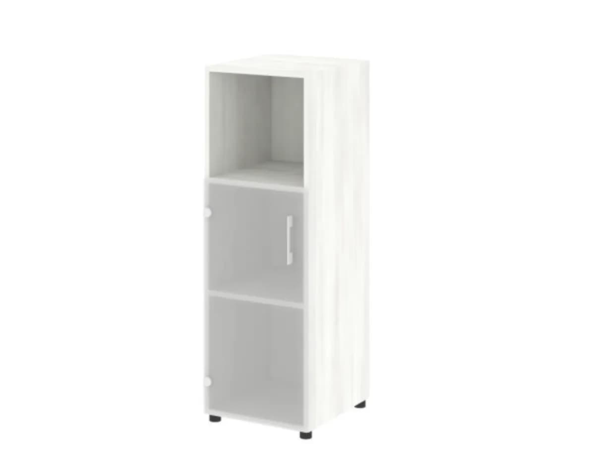 Шкаф средний узкий левый/правый (1 низкий фасад стекло) снежная патина