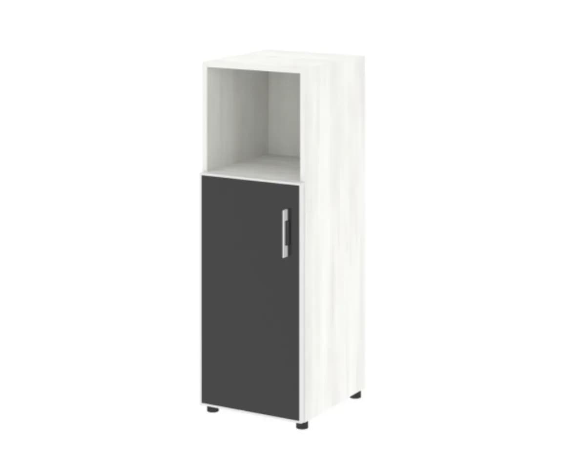 Шкаф средний узкий левый/правый (1 средний фасад стекло черное в раме) снежная патина