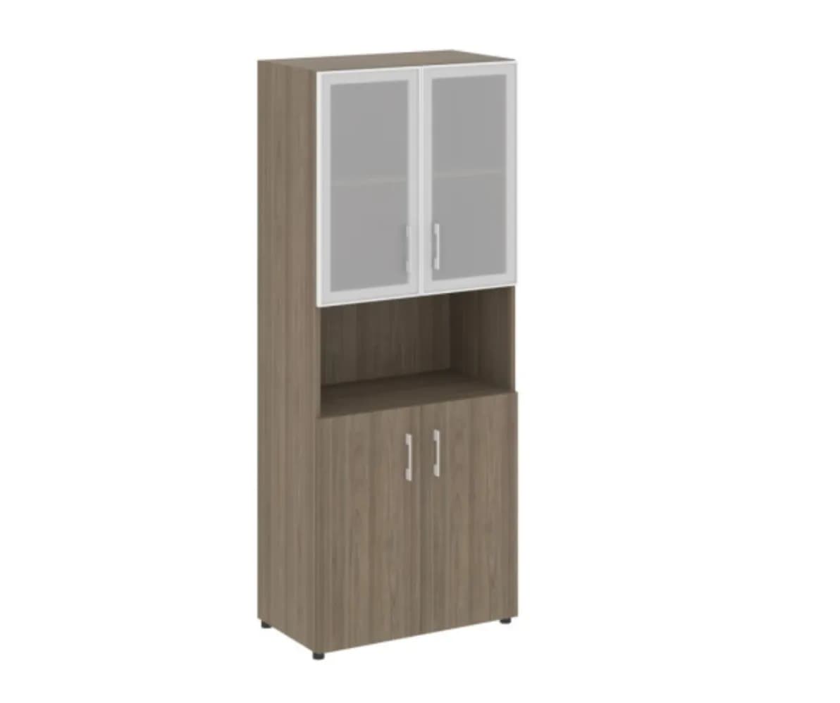 Шкаф высокий широкий (2 фасада ЛДСП + 2 стекло в раме) вяз благородный