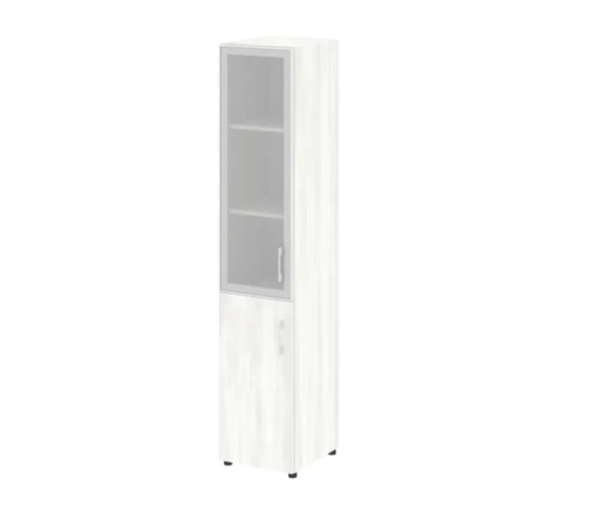 Шкаф высокий узкий левый/правый (1 низкий фасад ЛДСП + стекло в раме) снежная патина