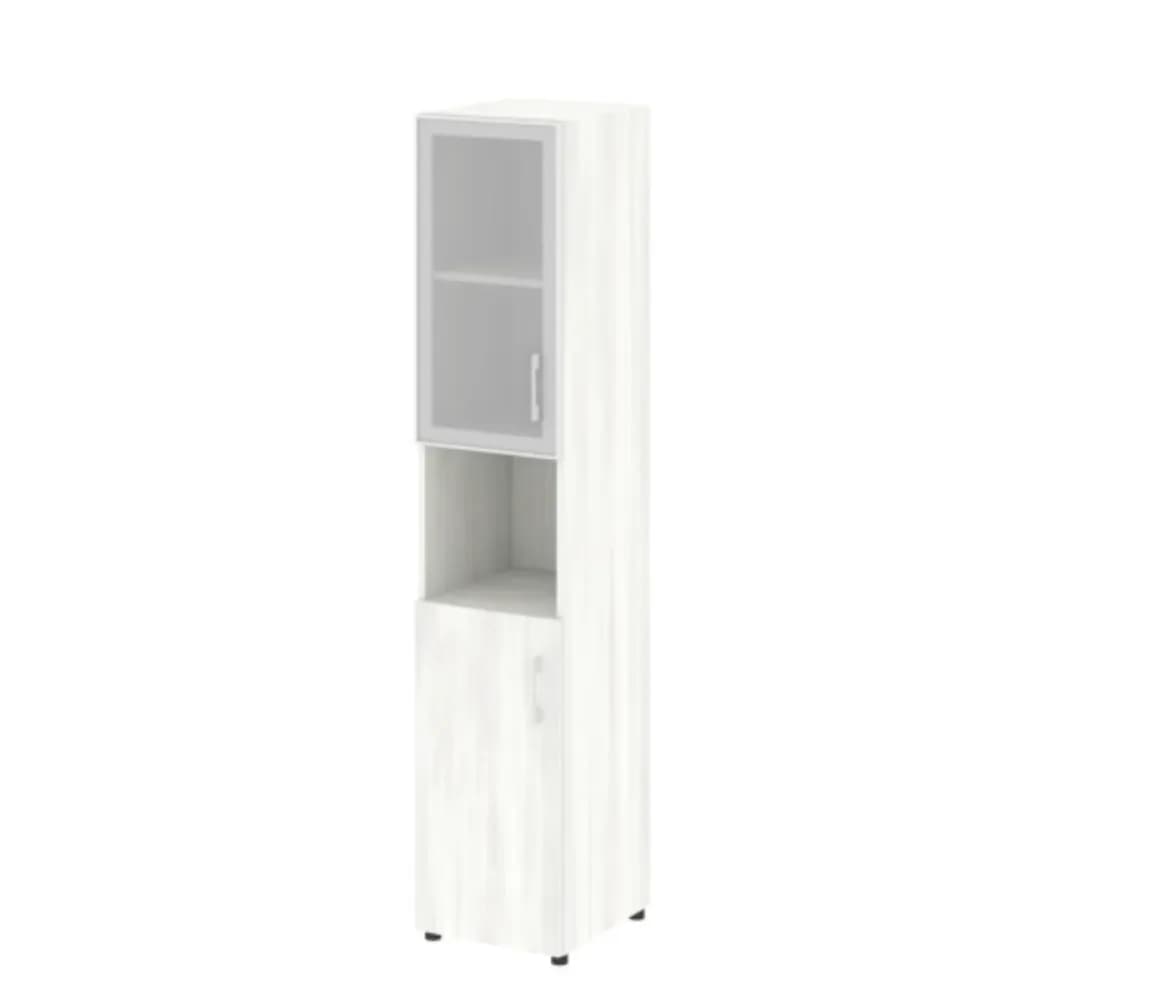 Шкаф высокий узкий левый/правый (1 низкий фасад ЛДСП + стекло в раме) снежная патина