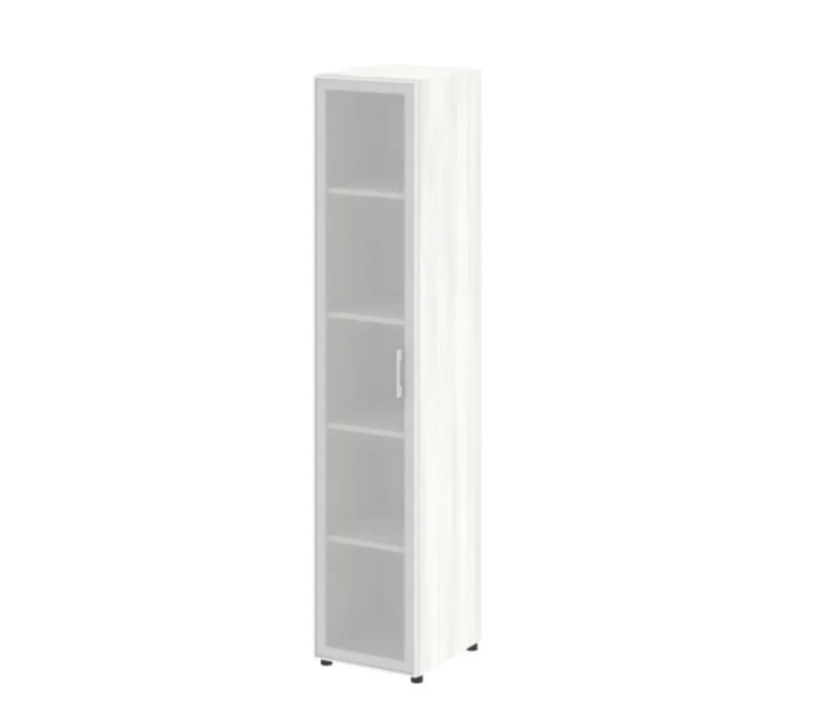 Шкаф высокий узкий левый/правый (1 высокий фасад стекло в раме) снежная патина