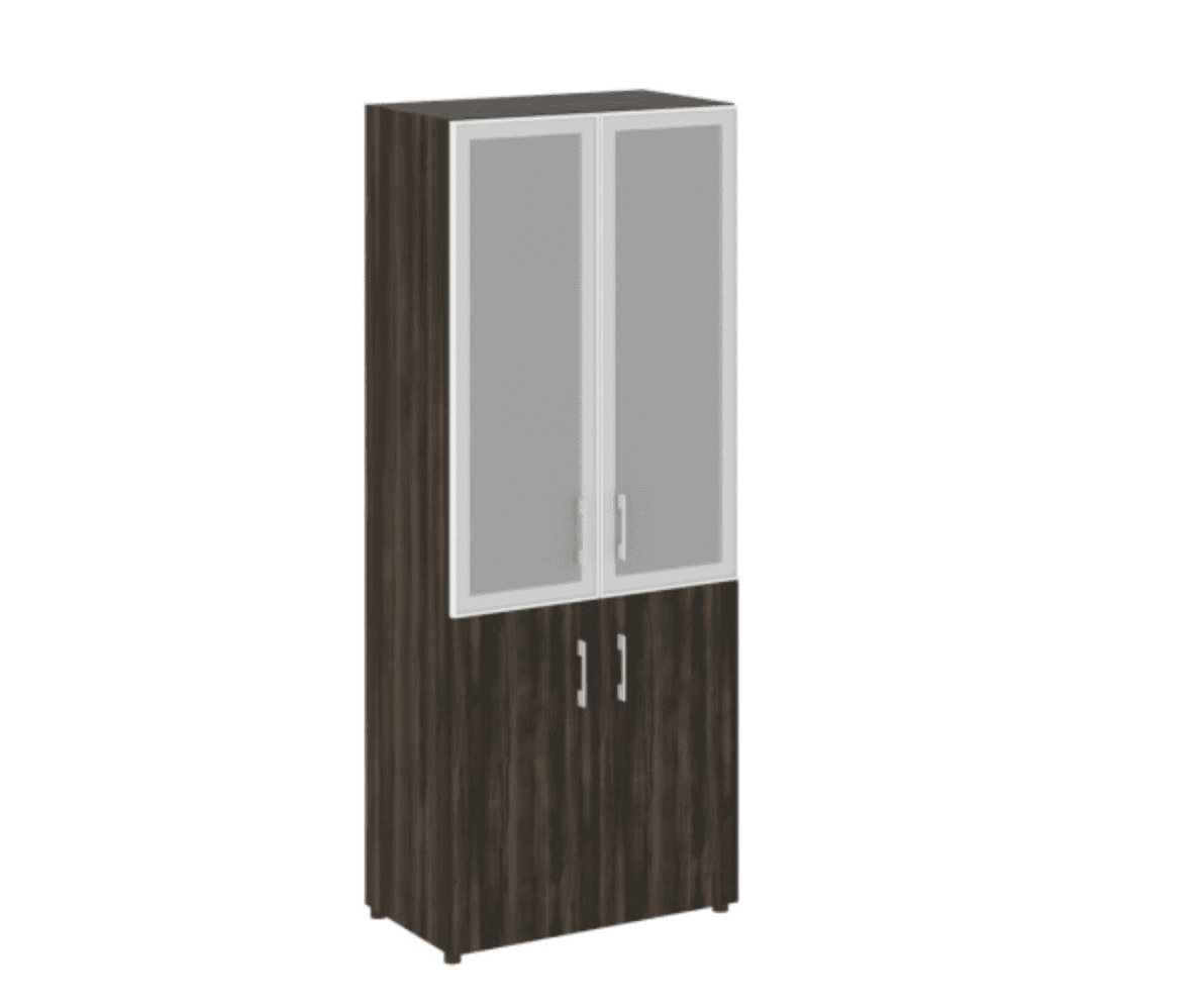 Шкаф высокий широкий (2 фасада ЛДСП + стекло в раме), дуб мали