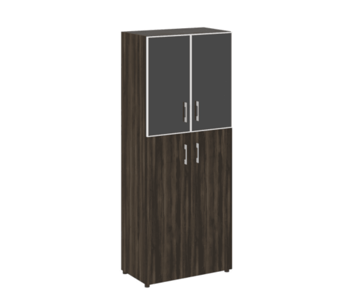 Шкаф высокий широкий (2 средних фасада ЛДСП + 2 стекло черное в раме), дуб мали