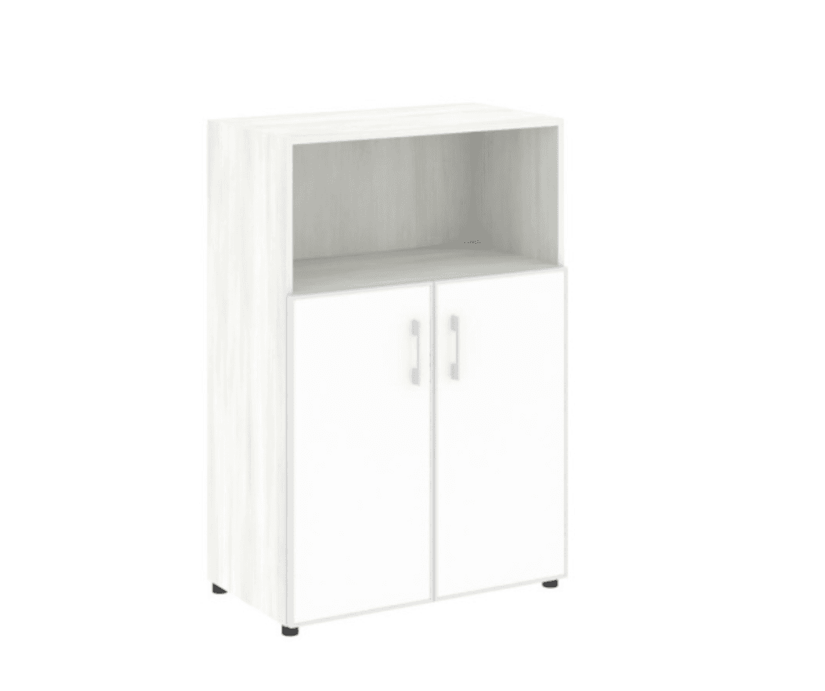 Шкаф средний широкий (2 низких фасада + стекло белое в раме), снежная патина