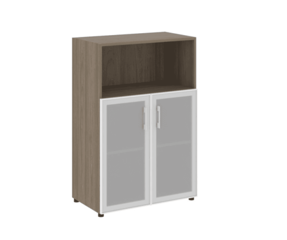 Шкаф средний широкий (2 низких фасада стекло в раме), вяз благородный