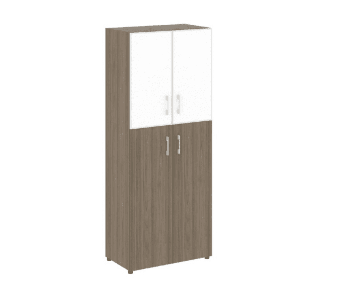 Шкаф высокий широкий (2 средних фасада ЛДСП + 2 стекло белое в раме), вяз благородный