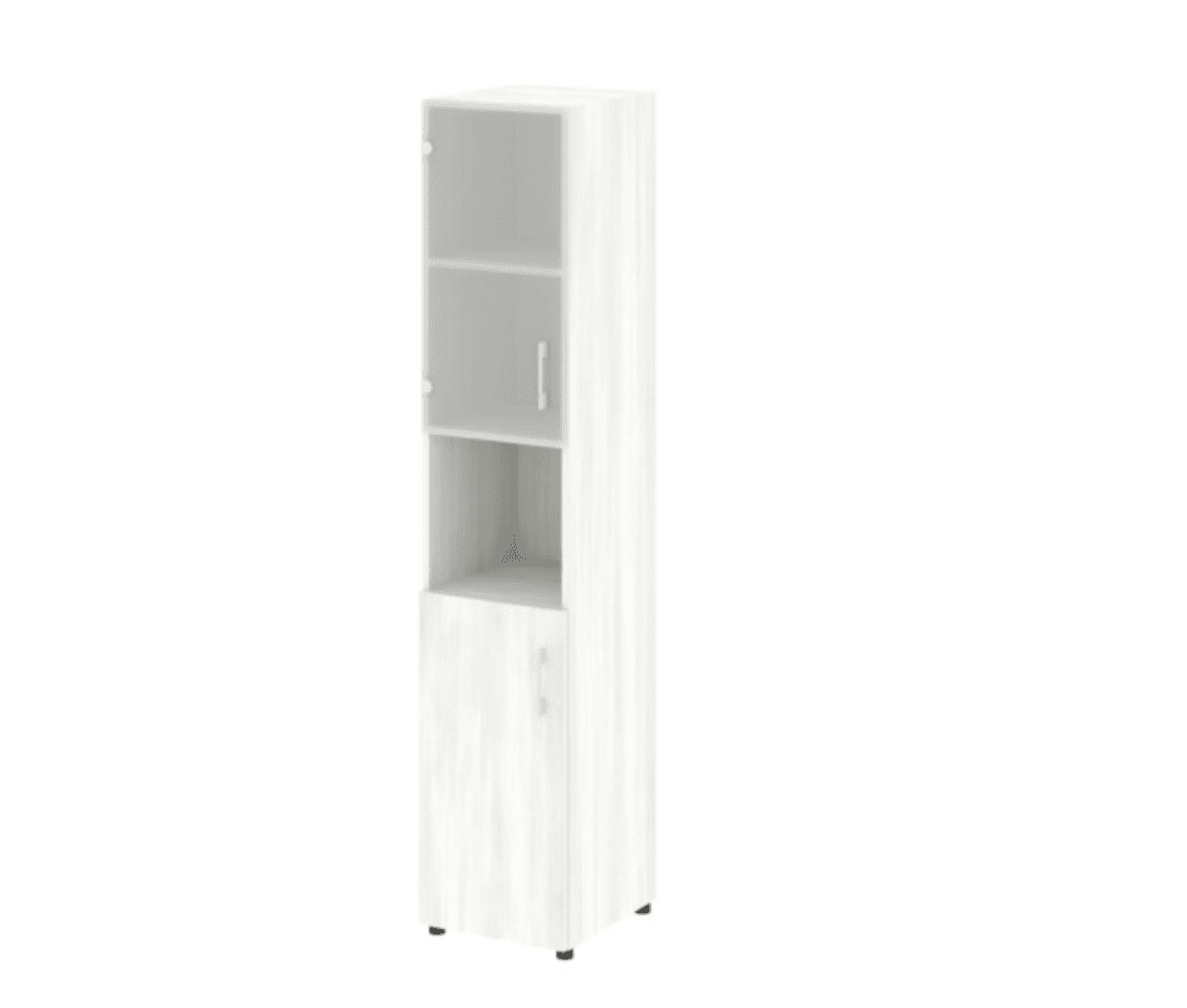 Шкаф высокий узкий левый/правый (1 низкий фасад ЛДСП + стекло), снежная патина