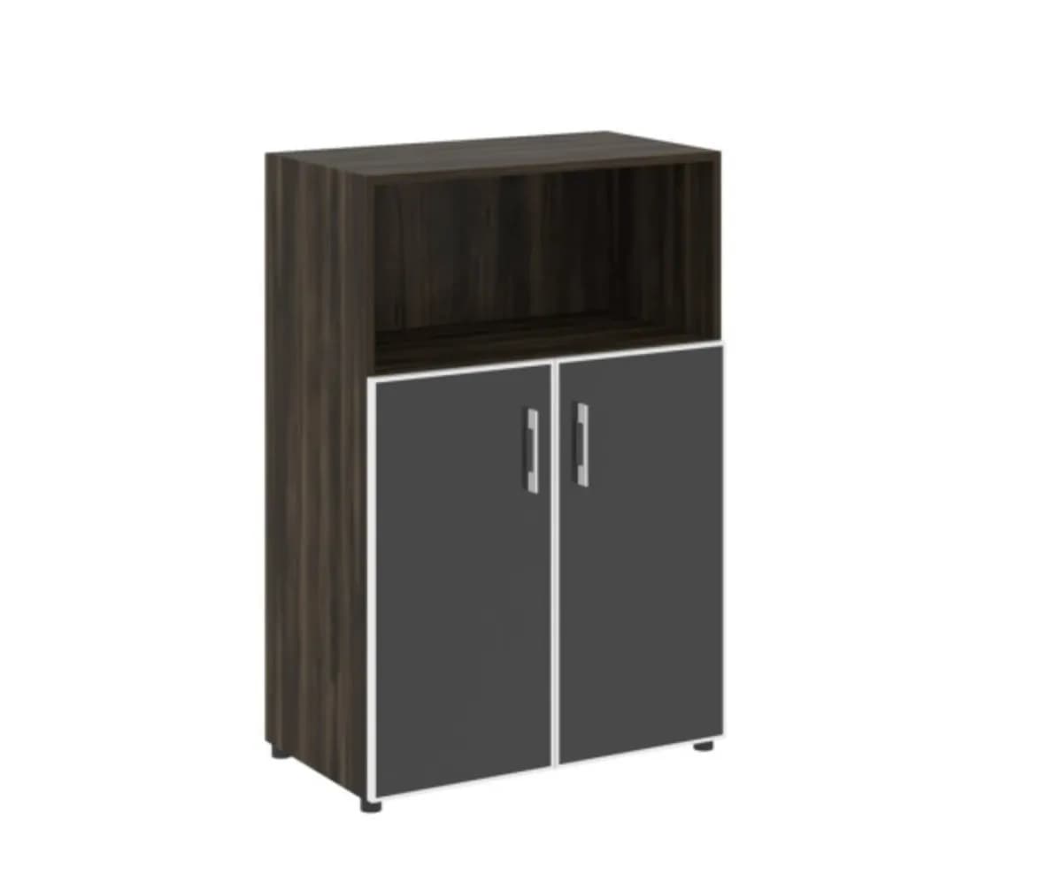 Шкаф средний широкий (2 низких фасада + стекло черное в раме) дуб мали