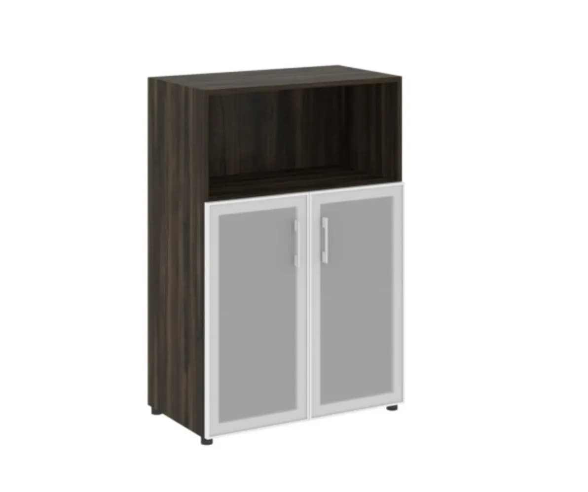 Шкаф средний широкий (2 низких фасада стекло в раме) дуб мали