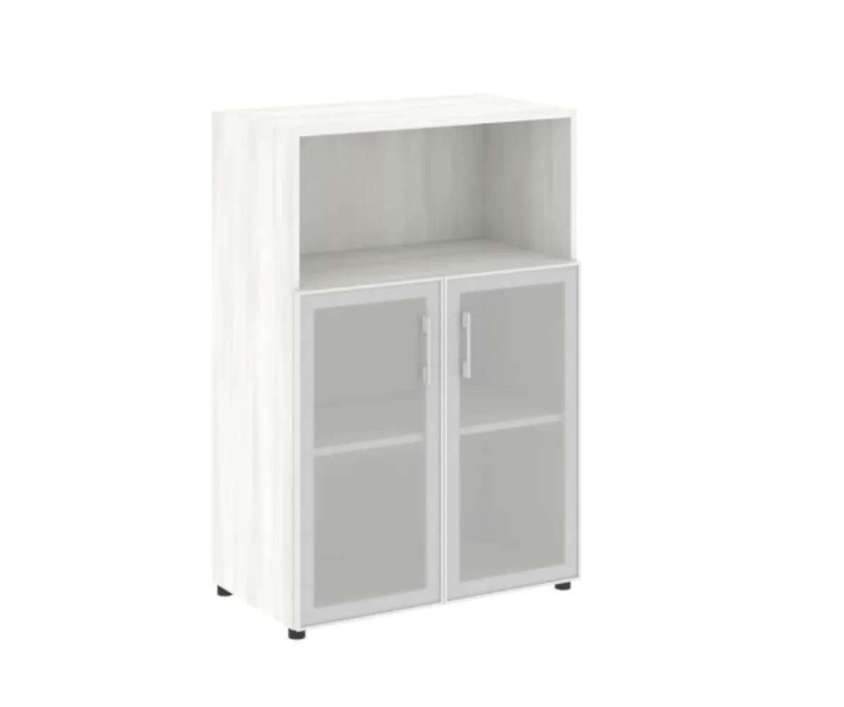 Шкаф средний широкий (2 низких фасада стекло в раме) снежная патина