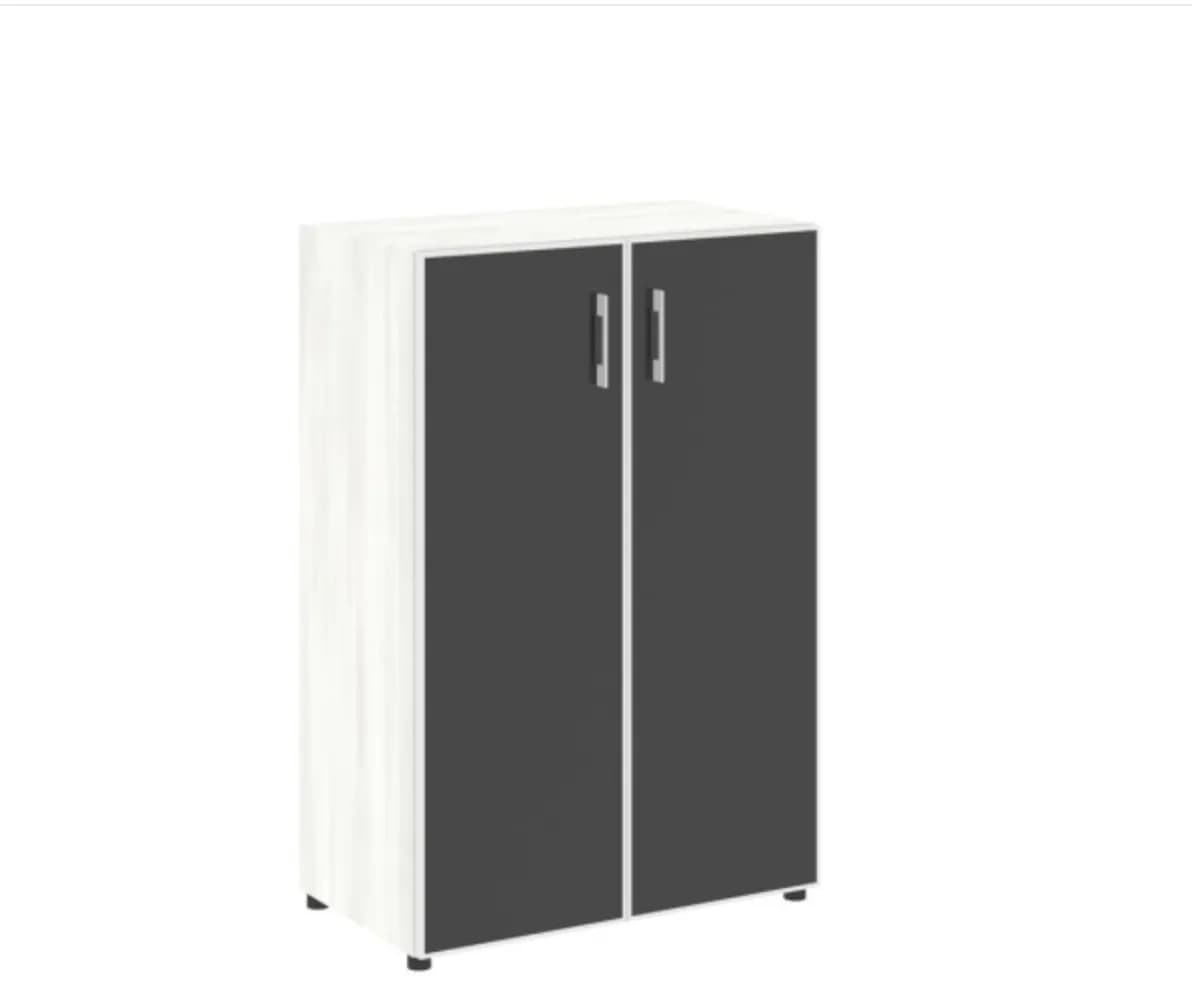 Шкаф средний широкий (2 средних фасада + стекло черное в раме) снежная патина