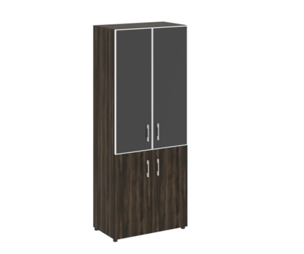 Шкаф высокий широкий (2 фасада ЛДСП + 2 стекло черное в раме) дуб мали