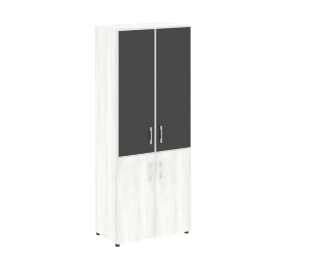 Шкаф высокий широкий (2 фасада ЛДСП + 2 стекло черное в раме) снежная патина