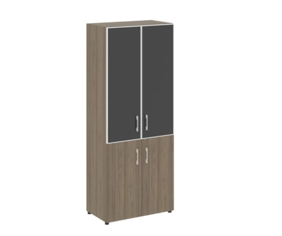 Шкаф высокий широкий (2 фасада ЛДСП + 2 стекло черное в раме) вяз благородный