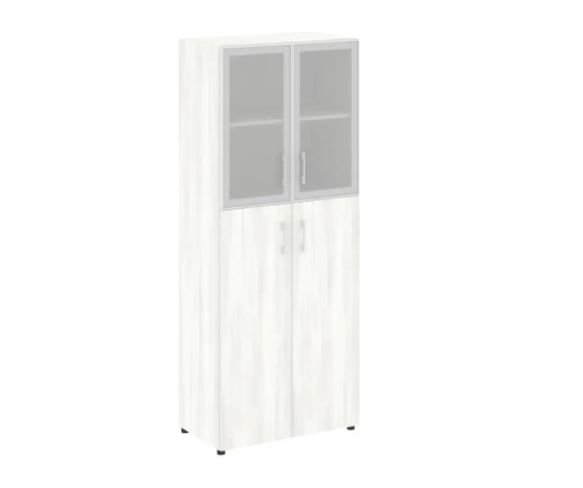 Шкаф высокий широкий (2 средних фасада ЛДСП + стекло в раме) снежная патина