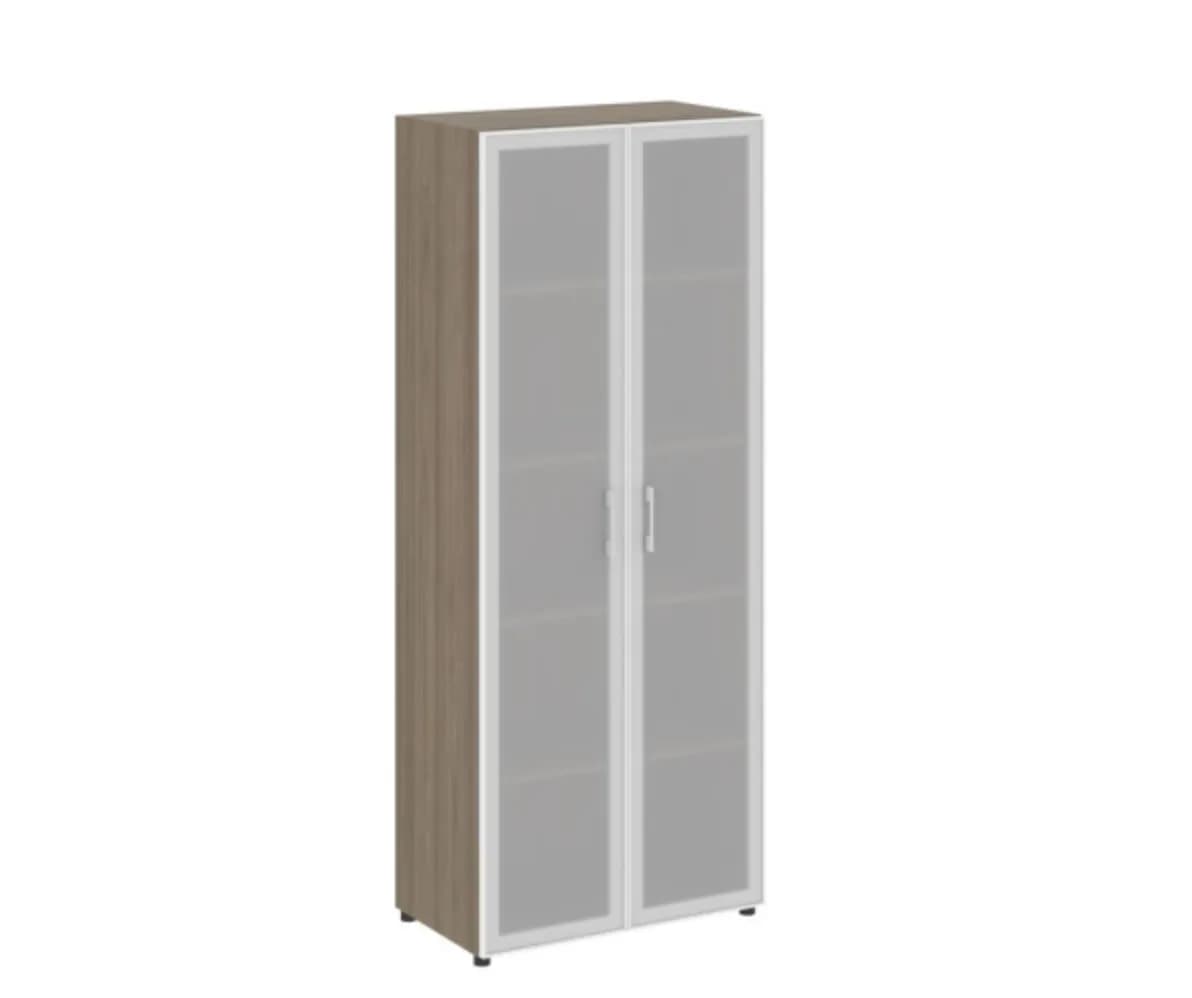 Шкаф высокий широкий (2 высоких фасада + стекло в раме) вяз благородный