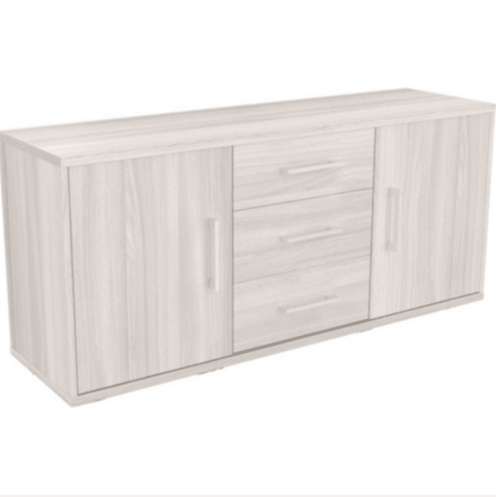 Тумба стационарная для оргтехники, 3 ящика (верхний замок), две двери, дуб светлый