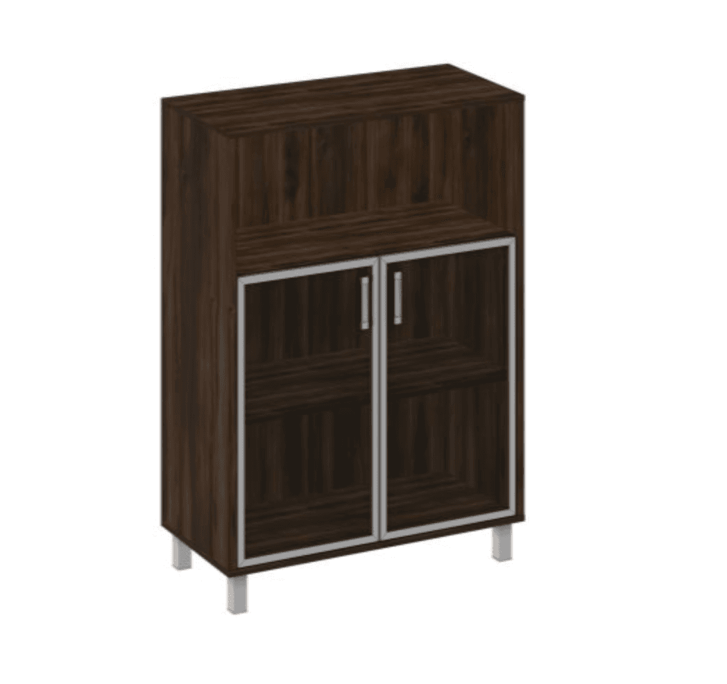 Шкаф для документов, двери стеклянные в алюминиевой раме + ниша, дуб ристретто