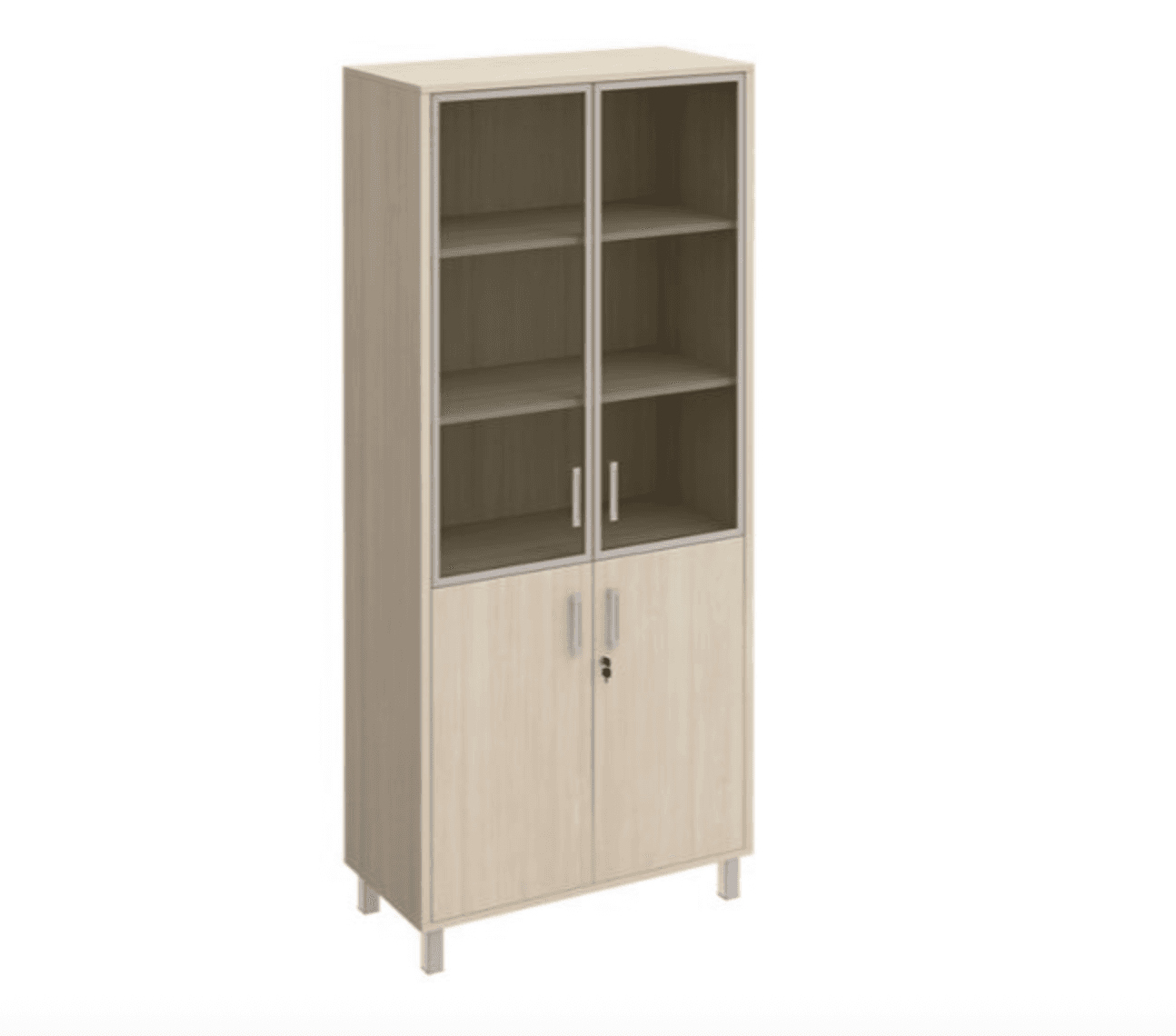 Шкаф для документов двери стеклянные в алюминиевой рамке + ДСП с замком, дуб шамони