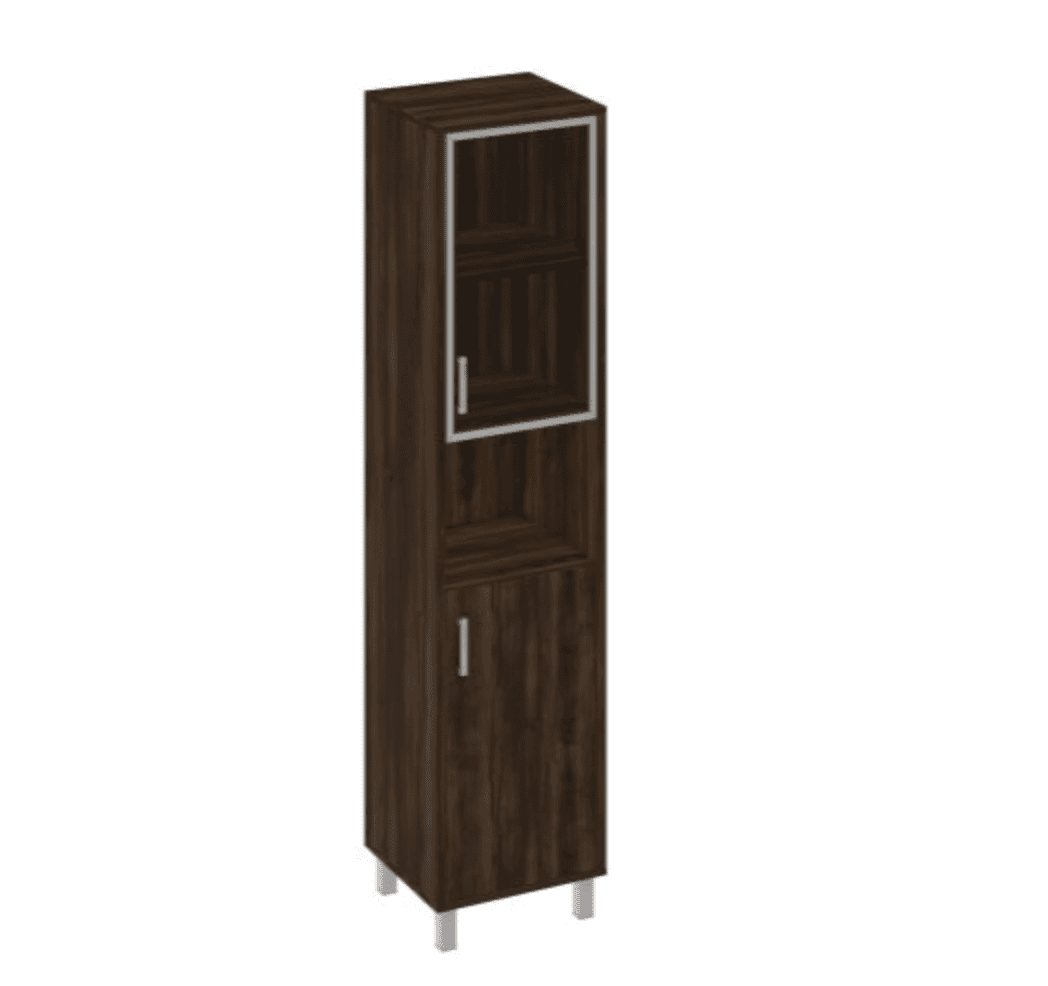 Шкаф для документов правый, двери стеклянная в алюминиевой раме + ДСП без замка + ниша, дуб ристретто