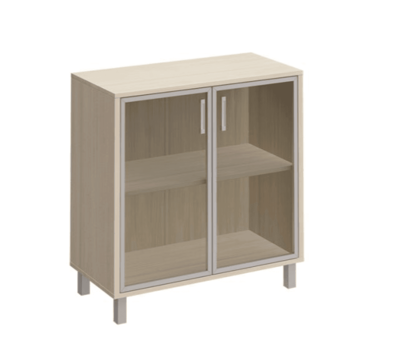 Шкаф низкий для документов две стеклянные двери, дуб шамони