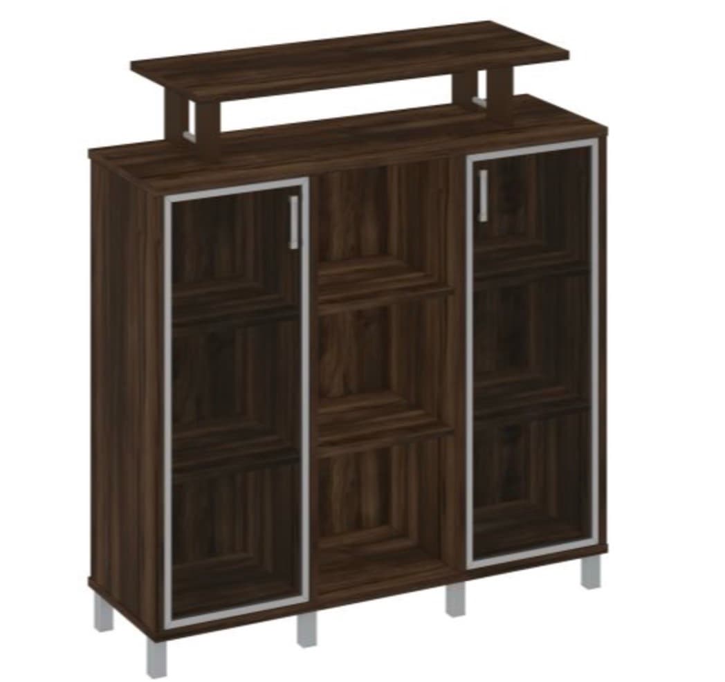 Стеллаж средний с надстройкой и стеклянными дверками, дуб ристретто