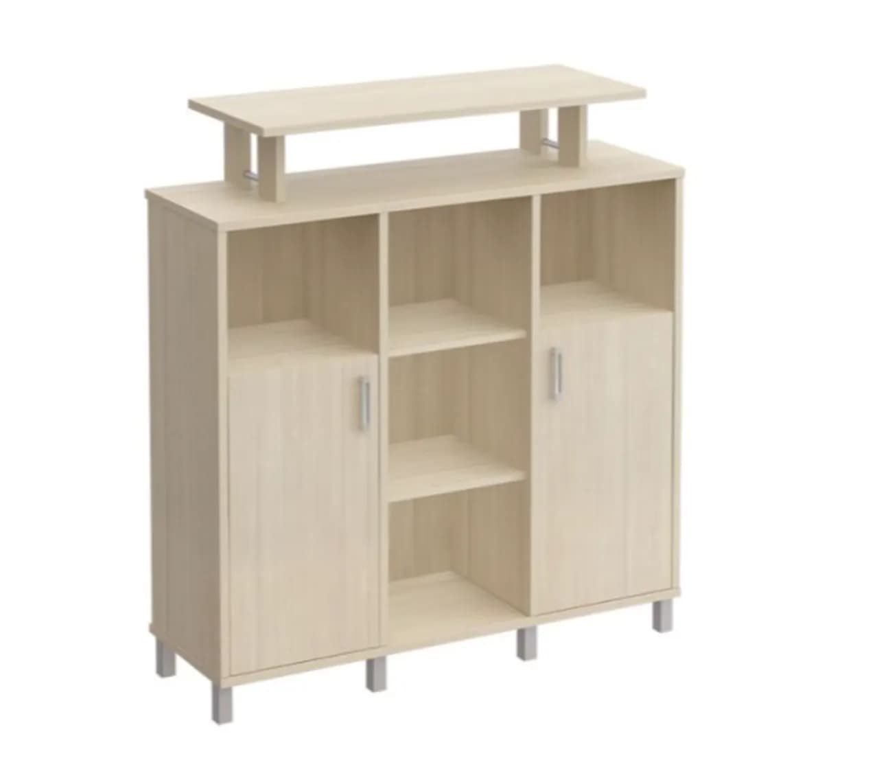 Стеллаж средний с надстройкой и деревянными дверками дуб шамони