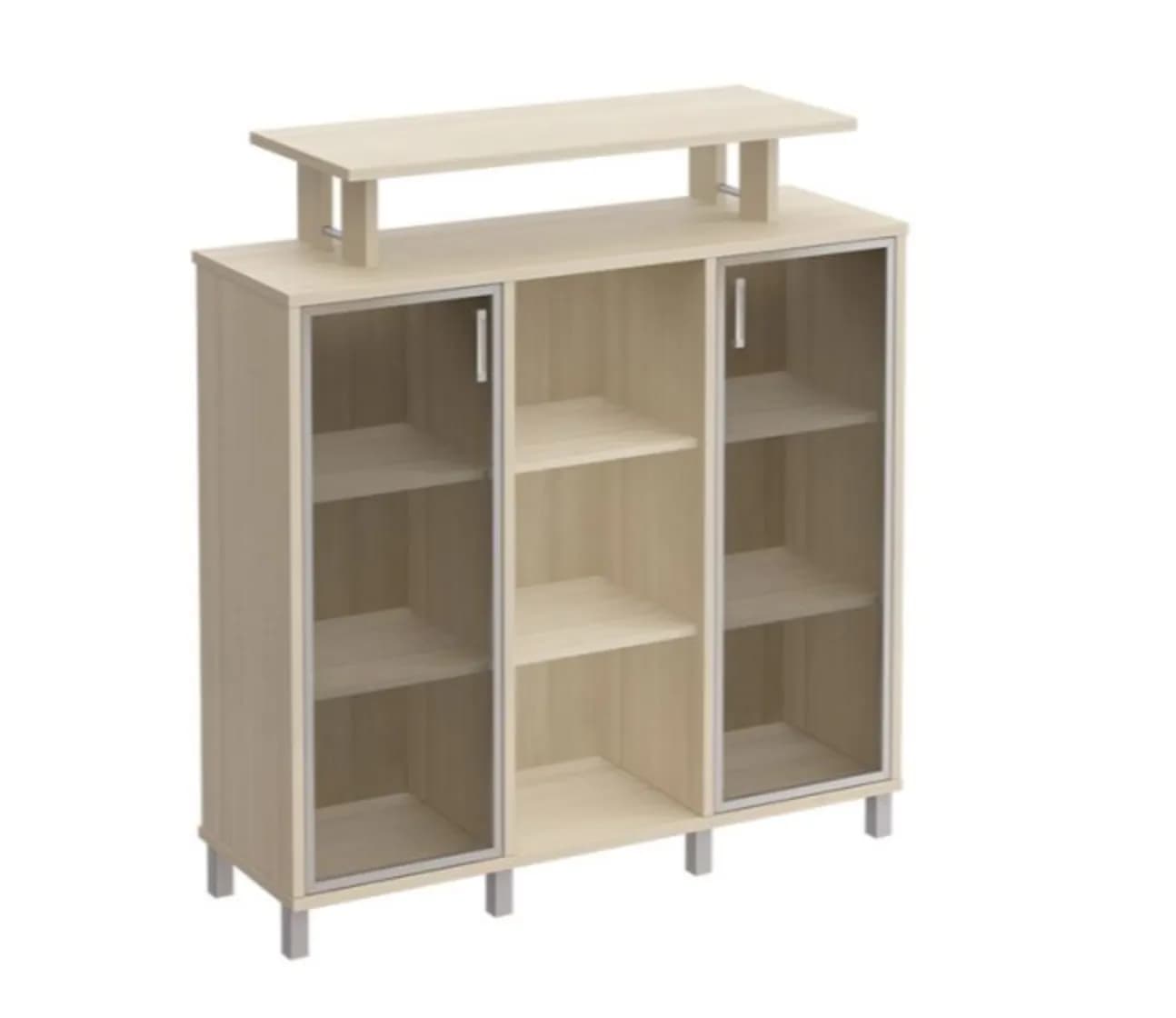 Стеллаж средний с надстройкой и стеклянными дверками дуб шамони