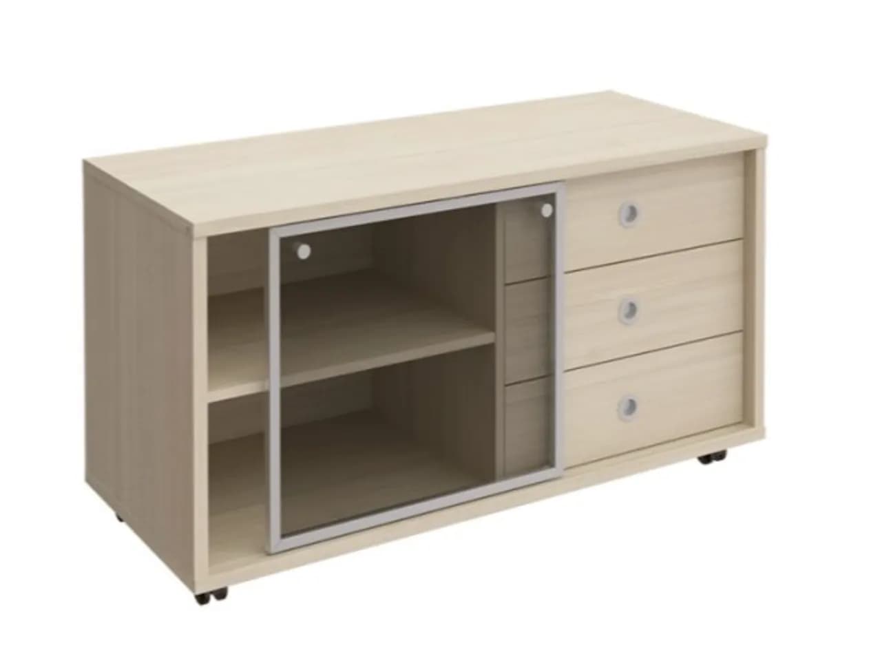 Тумба выкатная 3 ящика без замка стеклянная дверь-купе дуб шамони