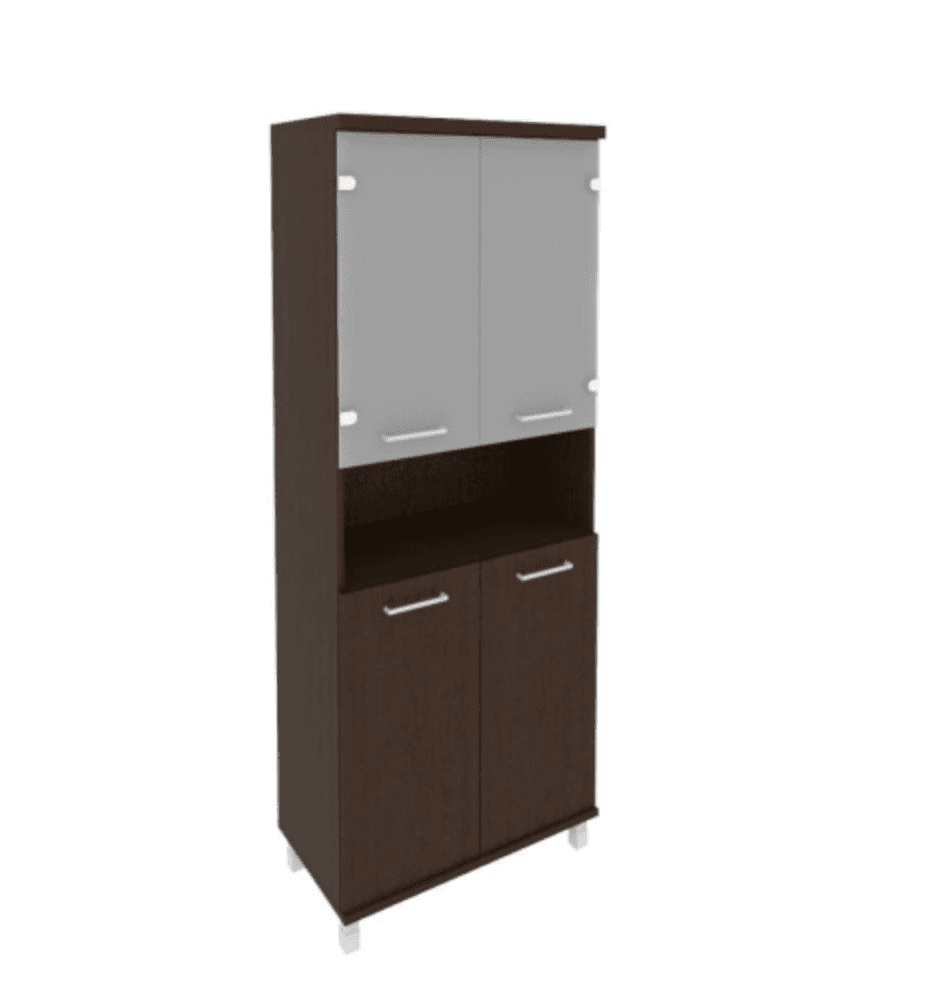 Шкаф высокий широкий (2 низкие двери ЛДСП, 2 низкие двери стекло), венге цаво